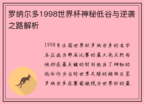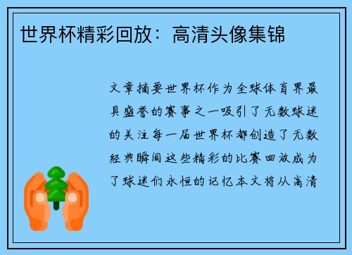 文章摘要:本文将通过高清世界杯1080p赛事直播全程回顾精彩瞬间,深入分析如何通过高清画质呈现比赛的每一刻,将观众带入一个身临其境的比赛体验中。首先,我们将探讨高清直播的技术优势,尤其是其在传输与画质...
